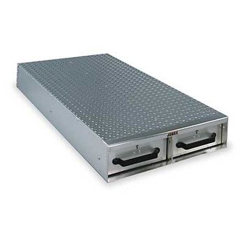 The JoBox Sliding Drawer Storage Box provides a durable, safe and versatile storage system for trucks and vans. Heavy-gauge aluminum construction is light enough for easy transport yet durable enough to stand up to heavy loads. U.S.A. Body Material: Aluminum tread plate, Body Finish: Bright, Drawers (qty.): 2, Drawer Material: Aluminum, Drawer Dimensions L x W x D (in.): 49 1/2 x 11 x 5, Dimensions L x W x H (in.): 50 x 24 x 6